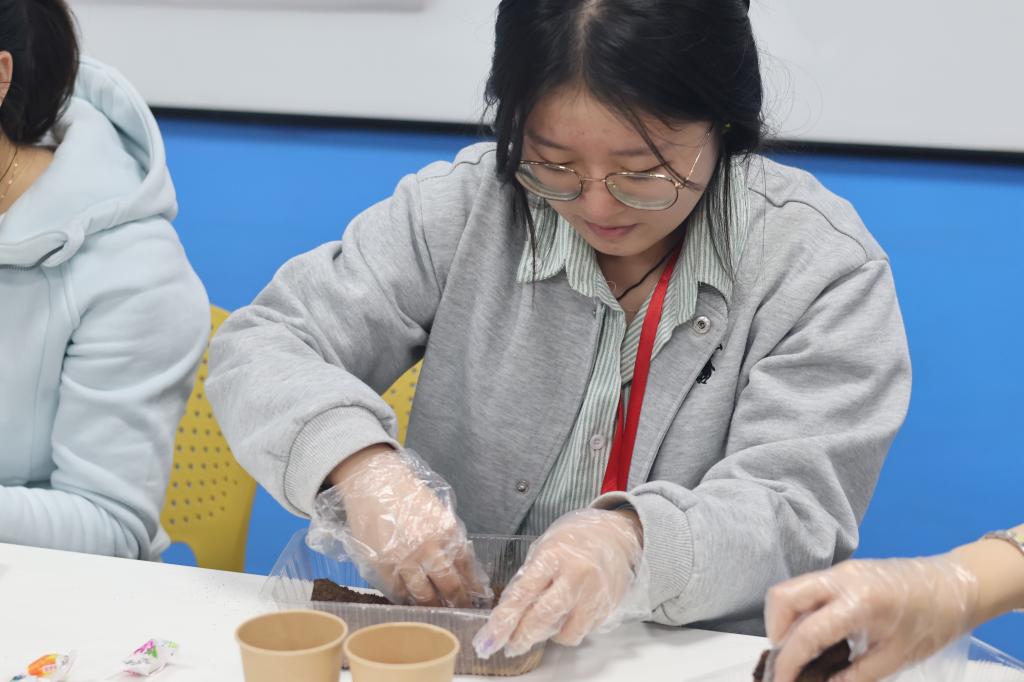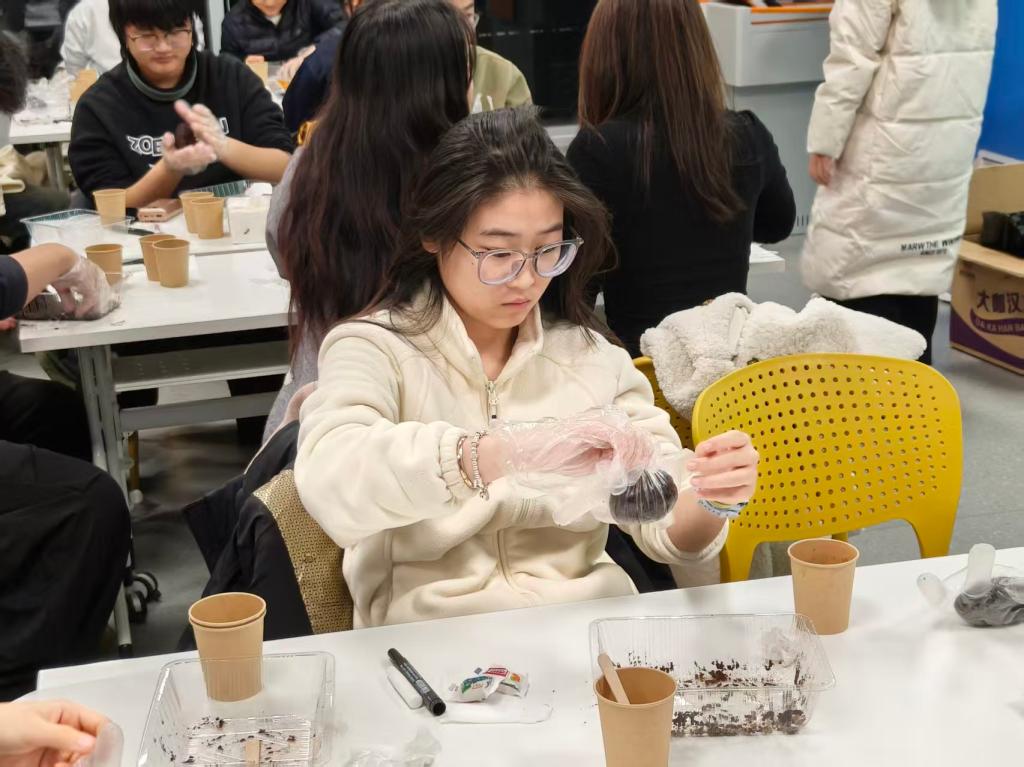 在接下来的活动中,成员们仿佛置身于一个充满无限可能的创意世界,亲身体验咖啡渣的神奇转化。张博详细且生动地讲解了香牌制作的精妙流程。只见同学们将咖啡渣与天然黏合材料细心揉成团,再经过精心的压模、耐心的晾干等一系列步骤,一个个散发着浓郁烘焙香气的独特装饰品便诞生了,仿佛在诉说着咖啡渣重获新生的故事。