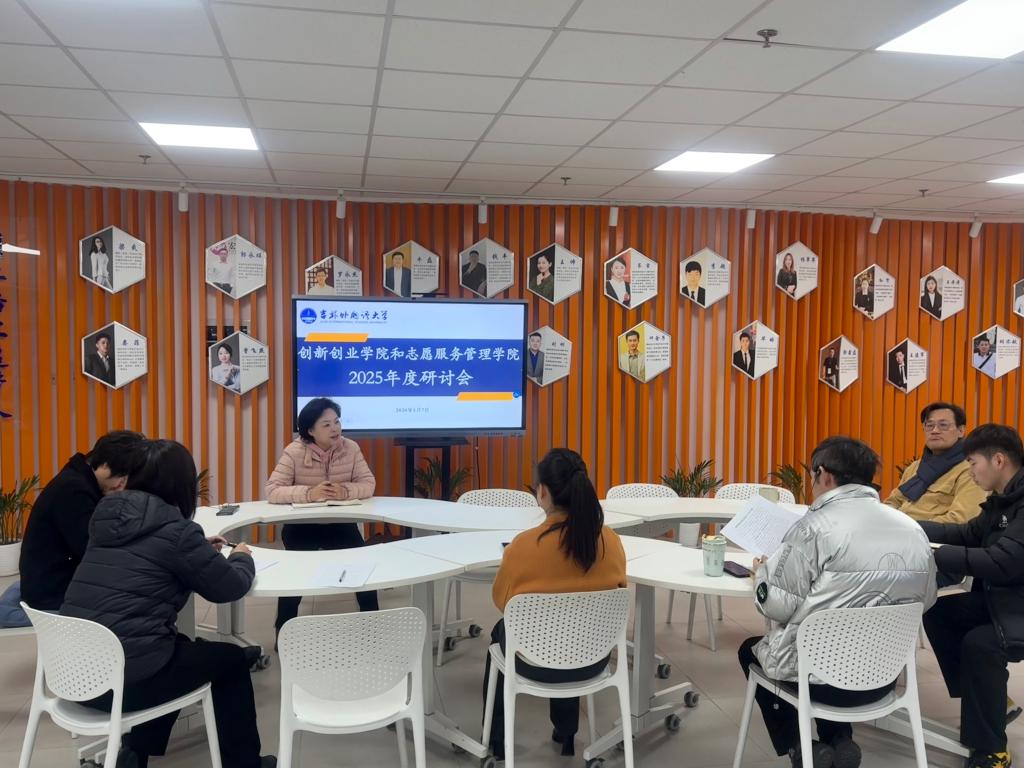 1月7日,创新创业学院与志愿服务管理学院组织召开2025年度专题研讨会,紧扣学校研讨主题,结合学院实际,围绕专创融合五维赋能工程建设与志愿服务管理学院发展规划展开深入讨论。会议聚焦组织架构优化、课程体系建设、师资队伍培养、项目孵化机制及成果转化路径等核心议题,为推动学校创新创业教育高质量发展明确了方向和路径。